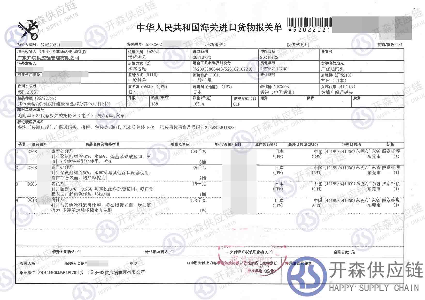 【進(jìn)口案例】表面處理劑進(jìn)口報(bào)關(guān)代理服務(wù)