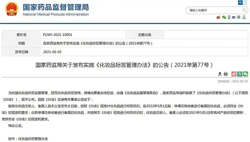 2022年5月開始,國家藥品監(jiān)督管理局關于《化妝品標簽管理辦法》(2021年第77號)將正式施行,關于進口化妝品應注意以下內(nèi)容: