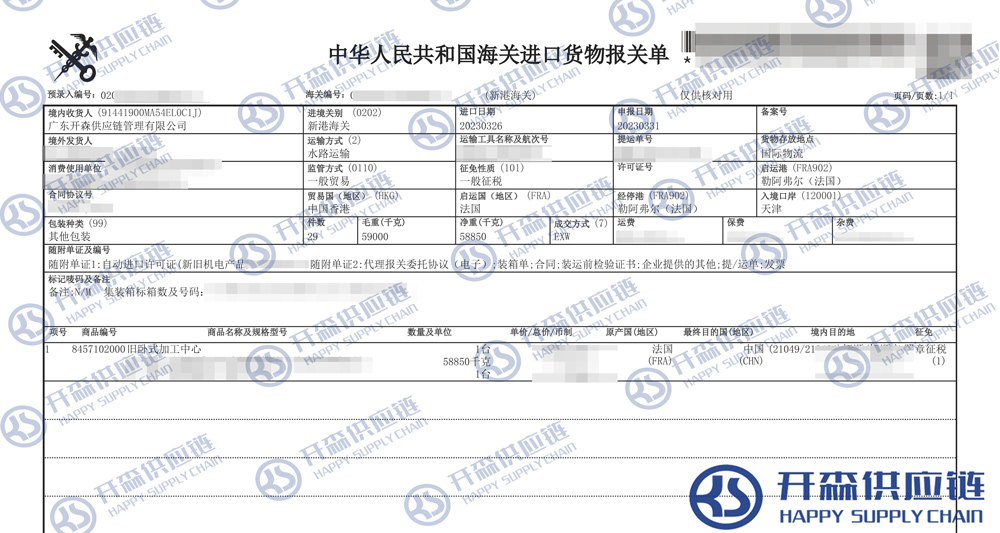 【本文結語】 上述就是天津港舊臥式加工中心進口報關代理案例「清關服務」的全部內容,希望能對您有所幫助,如有舊加工中心進口報關上任何疑問及問題可隨時在線聯系我們或撥打 18002611553,開森供應鏈擁有豐富的舊加工中心進口報關操作經驗及案例,10余年進口經驗為您所用,各類進口疑難都能為您一一解答及協助快速處理解決!